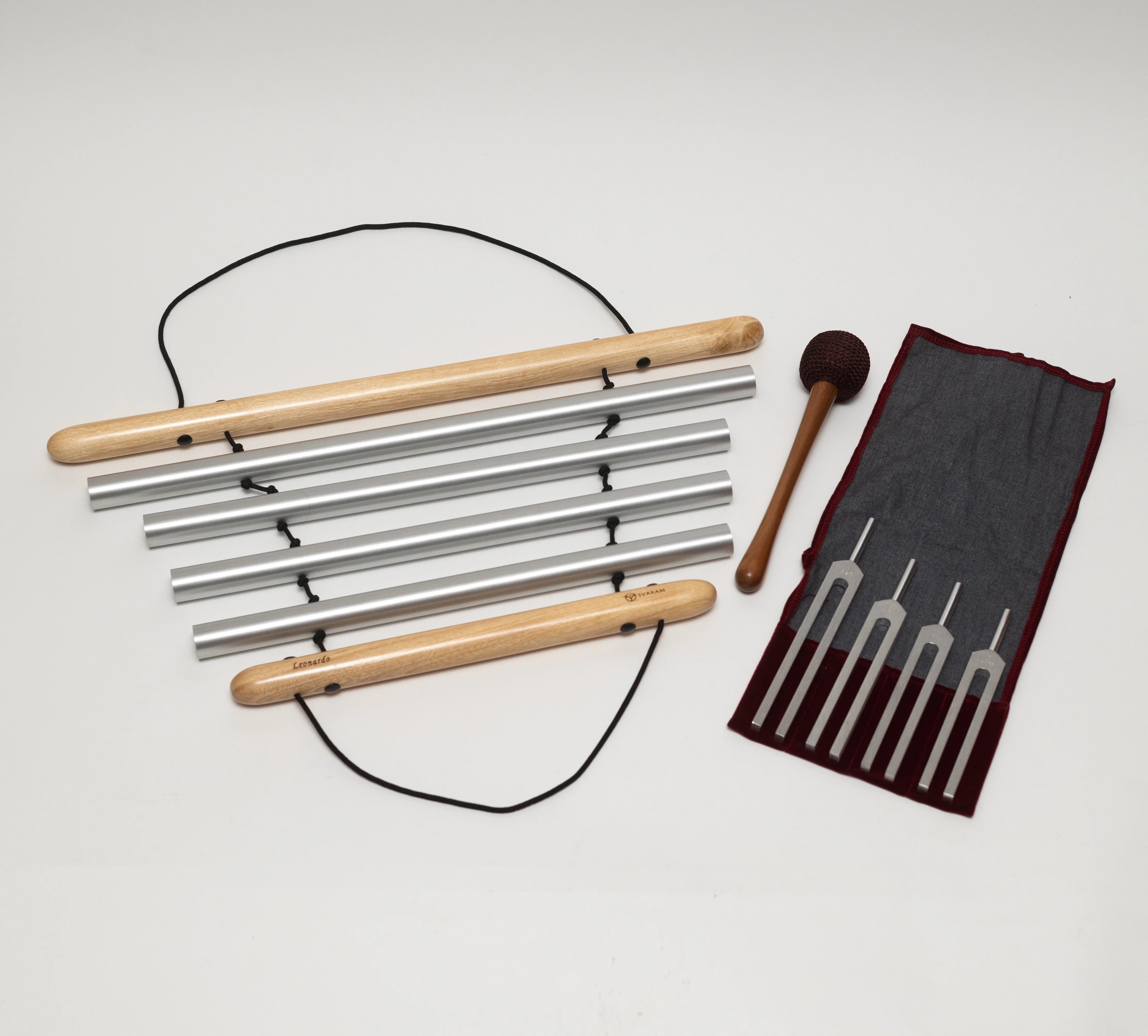 The Leonardo Swinging Chimes are inspired by the work of Dr. John Beaulieu and his renowned Leonardo tuning fork sets.