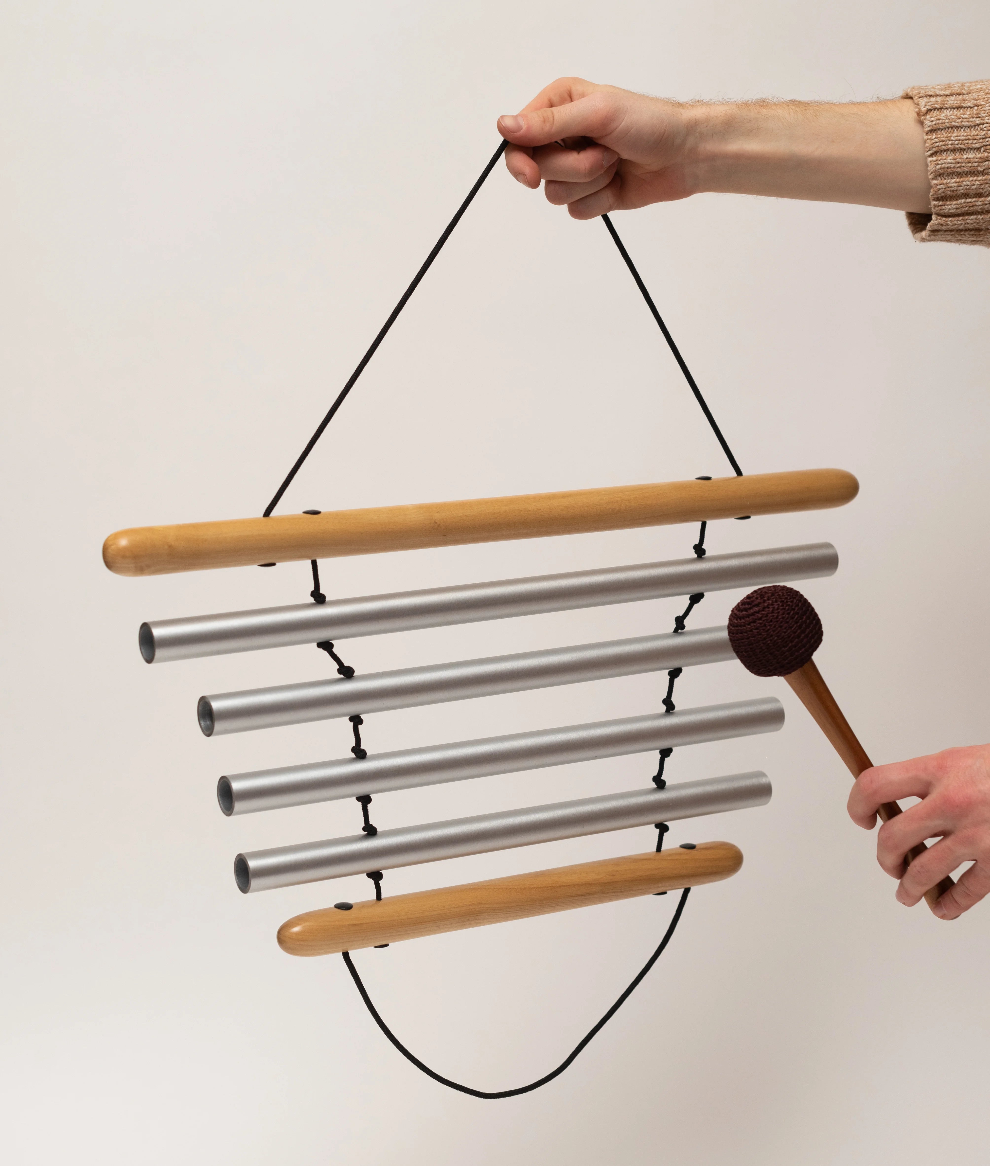 Thoughtfully designed materials create a rich tonal profile with long, sustained resonance. The chimes are tuned to some of the most harmonious musical intervals—the perfect fifth, perfect fourth, and major sixth—a scale known for activating vital primary intelligence and supporting deep listening.
