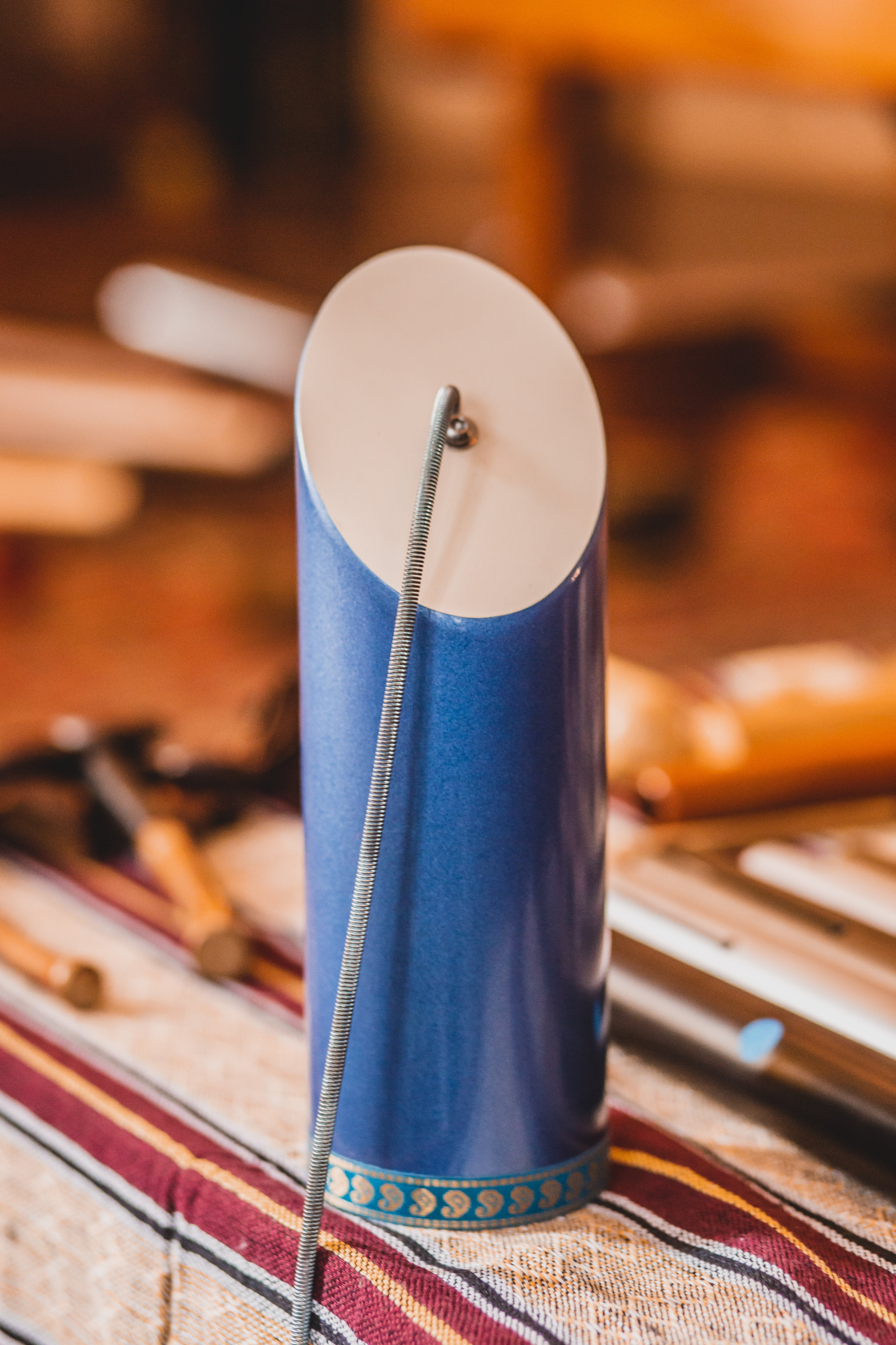 Another recent invention in the world music scene is this rather simple but truly effective sound maker. Through simple manipulation of a steel spring attached to a resonator—which can be opened or closed by hand-unexpected sounds of elemental power issue forth, a storm of an experience!