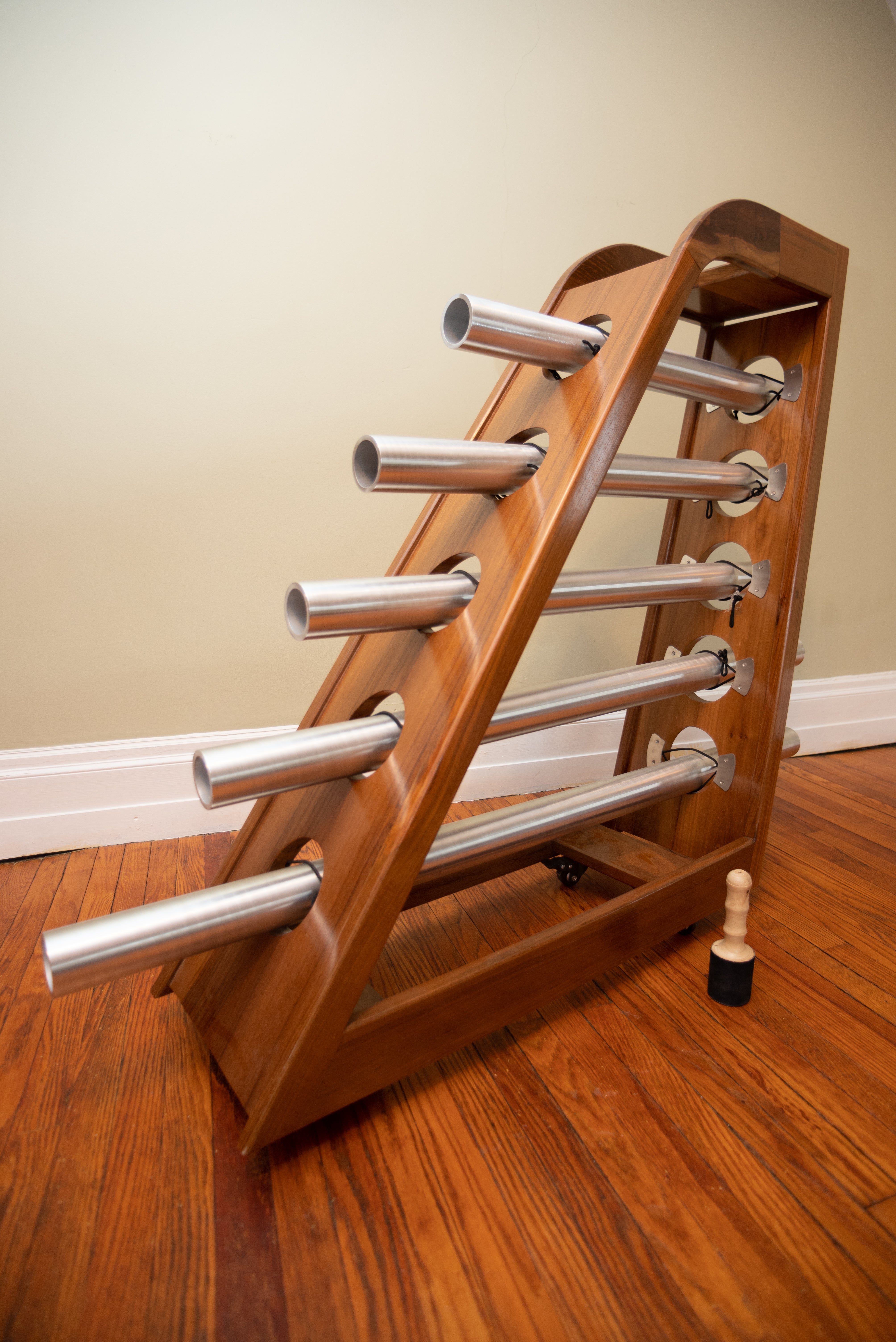 This worldwide unique instrument relates to the Fibonacci Series which approximates the Golden Mean. Playing the proportions of 3: 4: 5: 6: 8 is one of the most vibrant, resonating sound sources of our experience. The powerful and long sustaining resonance fills any space with the harmonies of pure, embracing, and uplifting vibrations.